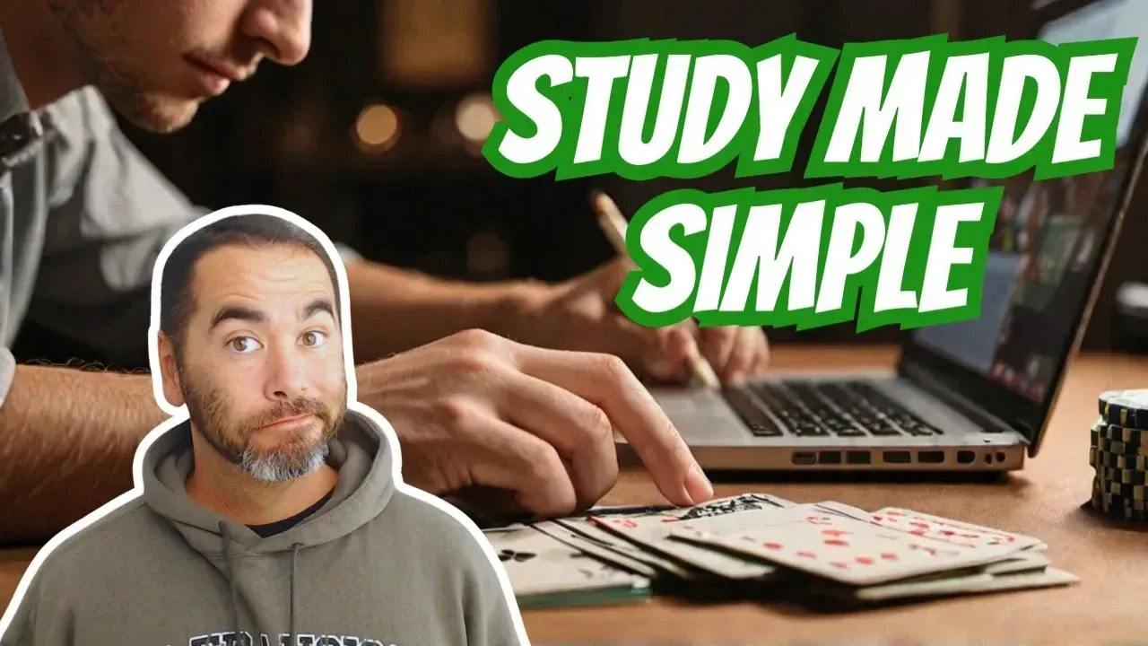 29 Mar 2025 Beginner This material is for beginner players A-game discipline motivation studying If you want to start improving your skills and your results this year, you need to do your studies in an effective manner. The study strategies I'm going to give you in this article allow you to do this on your own without any special software or any assistance. Now, this is a simple and beginner friendly plan that you can use starting today. Let's get into this! Poker Study Foundation This is big brain time. The foundation of effective poker studies is built on two key ideas: Learn something, do something; Repetition builds effectiveness. Now, these two concepts will help you get the most out of your poker study time, whether you're studying for just five minutes a day or 55 minutes per day. They'll also help you prepare for additional studies in the future, like using solvers and higher concept applications. Let's dive into learning something & do something approach. First, most people just watch a training poker video or they read a chapter in a book and they don't practice what they learned. So that study time is mostly wasted. Learn something, do something will have you purposefully practicing everything you learn. If a video teaches you how to check raise bluff, but you don't actually practice the strategies, did you really learn how to check raise bluff? My answer is: no, you didn't. Action is the greatest teacher — you must practice what you learn to improve your skills and your results. Now, repetition builds effectiveness. Back in school, you were taught that two times two equals four. But you didn't hear it just one time. And now it's magically ingrained in you. Your teacher gave you multiplication tables and you wrote the answer over and over again, along with the answers to three times six and twelve times twelve. Now that repetition, even if you intuitively grasp the concept to start, that's what led you to actually learning multiplication. Grasping the concept plus repetition leads to ingrained skills. That same thing that happened when you were a little kid happens now later in life in poker. So progress in your studies, it's going to take time. You probably won't ingrain anything in your skill set on your first day of study. But that's OK. By studying today, you're going to work to build foundational study skills and you will gradually challenge yourself to do more as time goes on. And you'll improve in ways that you never thought possible. Also Read: How to Learn Poker in 2025 Get Your Studies On Let me show you how to get into these two foundational concepts as a complete beginner. In order to get your studies on, you need to: Decide what one skill you want to build this week; Choose the skill and then find a YouTube video to study; Watch the training video, and take notes in your poker journal; Practice the strategies that you learn in game. And then afterwards, you're going to review hands related to your poker strategy focus. Now, this is the simplest way to get your studies on by yourself. Now, you might be asking: how often should I study? As a beginner, I recommend aiming for five days a week, 20 minutes per day. It's as simple as that to begin your study journey. Poker Challenges Now, you will encounter some challenges and you might even have some like nagging doubts and questions in your mind right now. First off, you might say: oh, I'm not used to studying. I'm 45 years old. Last time I studied was when I was 18 years old in high school (27 years ago). Here's the thing about study. Studying is just a skill like any other skill, like any poker skill that you want to build. If you're not used to study, I want you to block time in your daily schedule for five 20 minute study sessions each week. Scheduling your studies helps you to get it done every week, and it builds the habit of studying. Another challenge for you, beginners can be super excited to study, but they push themselves to do too much, and they end up getting burned out. Let's be realistic and start super simple. Maybe you've never studied poker. Like I said, 27 years ago, 18 years old was the last time you studied anything. Everybody has 20 minutes a day to study. And it's less than an episode of television. And heck, 20 minutes a day will not burn you out, and you can learn a lot in that very short amount of time. And like I said, we're starting simple. Over time, as you learn to enjoy studies, you get more out of it and you want to study more. Increase it 30, 40, 55 minutes. Another challenge you might face, you don't know what to take note of. At first, simply take note of anything that you want to remember in the future. Over time, your repetition with note taking will help you intuit what notes to take. Now, your first set of notes might be a full two pages of notes on a five minute video. But over time, you'll become more efficient with note taking. You'll whittle out the unnecessary stuff and just keep the most important stuff that you want to take with you into the future. Some poker videos are super long. I'm sure you've pulled up 30 to 40 minute videos on YouTube in the past. Now, this is where learn something, do something steps in. You're watching a long video. As soon as you learn something in a video and you say to yourself, hey, I need to practice that. Stop the video. Take note of this timestamp. You have your poker journal open. Note that at four minutes and 44 seconds, you stop the video. Now play a session and practice that thing that you learned that you feel is absolutely necessary, that you must practice tomorrow. Just return to that four minute and 44 second timestamp and resume your studies. And here is a top recommendation for players new to studying. Study time is warm up time. So do your 20 minutes of study right before you play and you practice for one or more hours. The study time, that 20 minutes, it's going to prime your mind for poker and it's going to help you play and p