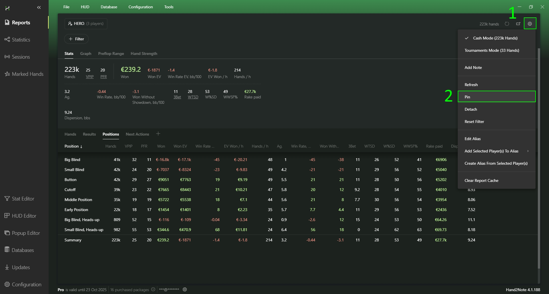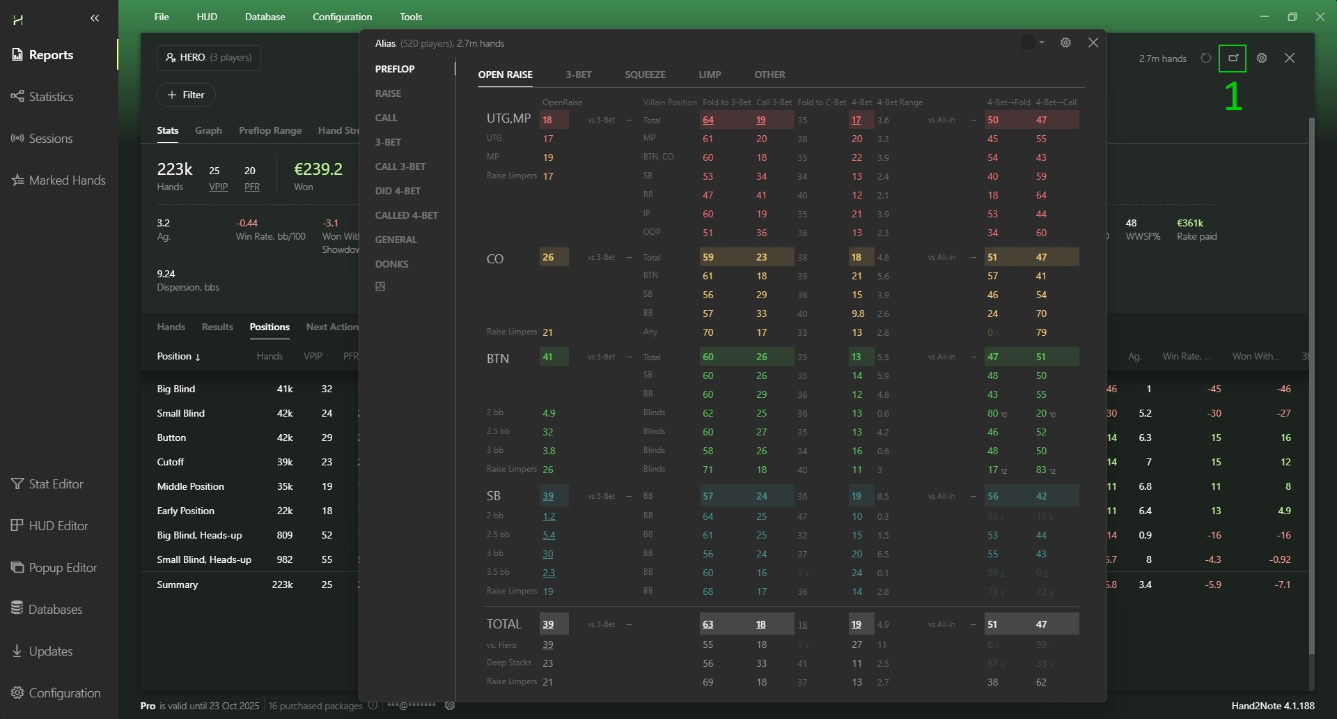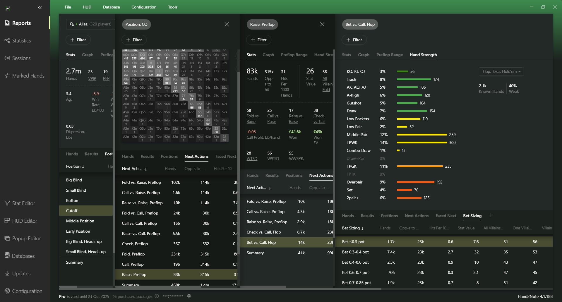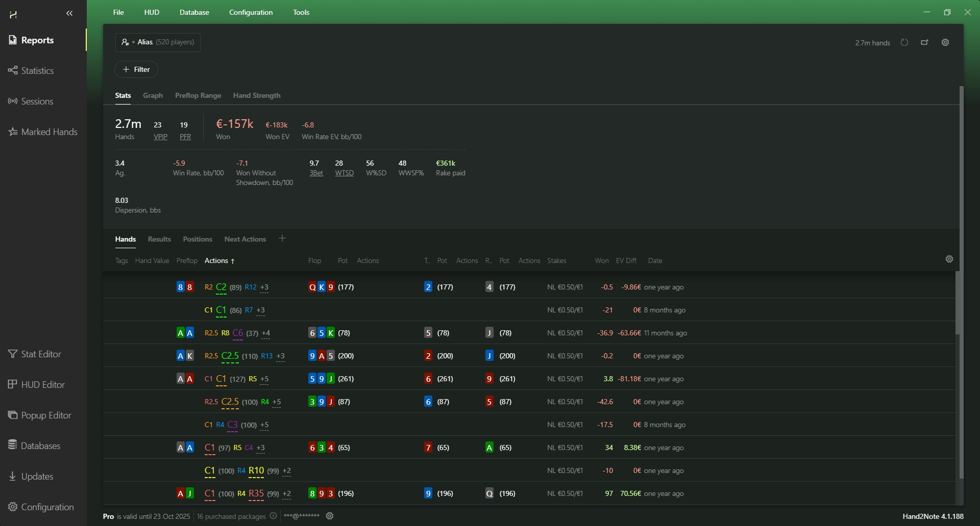 30 Oct 2025 Intermediate This material is for medium-skilled players EV GTO HUD MDA studying Analyzing the trends of the Multiple Players reports field in poker is the study of the average playing style of the entire player base or its parts. With the help of this analysis, you can identify typical leaks of the playing field and build a strategy not based on speculation, but on real data. In Hand2Note 4.1, these features are implemented through Multiple Player Reports (MPR). MPRS allow you to select a group of players based on specified criteria and aggregate their statistics into a single report. This is especially important for building an exploitative strategy: instead of blindly focusing on a theoretically "balanced" (GTO) approach, we study the average weaknesses of the field and adapt our game to them. For example, comparing your 3-bet frequency with the population average will immediately show whether you are playing tighter or more aggressively relative to the field. In this way, MPRS turn disparate opponent data into valuable strategic insights. How Multi-Player Reports (MPR) work The idea is simple: we take similar players and combine their hands as if they were "one whole". This solves the typical problem of lack of sampling: a single opponent may not have enough played hands for reliable conclusions, but there are already plenty of them for a group. In fact, MPR "filters out" not the game situations, but the players themselves: you set the conditions for the players (their VPIP, raise frequency, winnings, etc.), select a group and click "Apply". Hand2Note collects tens and hundreds of thousands of hands from these players and outputs general statistics. It's as if we see the "average" player from the selected category all at once. MPR differs from regular reports in that it does not look at one specific opponent, but at the combined data of many. Multi-Player reports solves the problem of a single player's lack of sampling: "by aggregating the statistics of similar players, you can estimate or deduce their range, gaining a more accurate understanding of the real strategy." At the same time, Hand2Note is able to process millions of hands and quickly produces results even on large samples. In other words, MPR is a powerful general data analyzer that allows you to deeply explore the ranges, bets and lines of the entire player base. Creating and configuring Multiple Player Report in Hand2Note 4.1 To create an MPR, follow these steps: Open the Reports tab in the Hand2Note main menu. Click on your nickname (or the desired player) to open the Player Dialog. Go to the Multiple Players tab. Here you will see the interface for setting up a group of players. To create a report, select a database and a date range. Then set the filters by which the players will be selected. These can be basic statistics ("Base Stats") - for example, Hands, VPIP, PFR, VPIP-PFR, etc. You can also use the "Wins" block - filters for winnings: All-in EV, Win Rate (bb/100), Won From User, and others. For in-depth analysis, there is an "Additional Stats" section where you can set your formulas based on any Hand2Note stats you have. After installing the filters, click Apply - a list of players who meet the criteria will be displayed at the bottom of the window. These will be the participants in the report. You can deselect unnecessary ones or add an alias (color label) for further grouping. When the group is ready, click Ok. Hand2Note will create a new report aggregating the statistics of the selected players. Thus, the MPR setting is the selection of a database, filters, and display conditions. You decide which players and situations to collect data on. For example, you can create an MPR for all players with 20%>VPIP>30% and PFR>15%, as shown in the example below. After the application, you will receive a report with aggregated statistics for this particular group of weak players. Grouping and filtering data When working with MPR, it is important to be able to group and filter data to refine the sample. Hand2Note 4.1 provides a flexible parameter system: By position. You can analyze players by their behavior from different positions (UTG, MP, CO, BTN, SB, BB). This helps to identify, for example, whether tight players differ from aggressive ones in early and late positions. You can enable the "Position = BTN" or other filters in the report. By stack size. An Effective Stack filter is introduced, for example, to highlight hands when the player's stack was less than 30 BB, and compare it with statistics for deep stacks. This shows whether the ranges change as the stack grows. By the type of player. Hand2Note has a system of labels (color markers) and a "Fish/Reg" classification. You can, for example, select only "regulars" or "big fish". The Color Markers interface allows you to mark a player as weak, regular, nit, koller, etc. When creating an MPR, you can filter by Fish/Reg or by a specific label. There are filters by poker rooms (PokerStars, GG, etc.) and by table limits, which is useful if you analyze multiple players from different networks. A combination of filters. Hand2Note allows you to apply multiple conditions at the same time. For example, to study the "average" regulars, you can set a VPIP of 20-30% And The PFR Is 15-25% And The EV Win Rate Is > 0. At the same time, the sample will remain focused and reliable. Using color labels, it is convenient to divide players into different types. Comparing your statistics with the field MPR can be used not only to study opponents, but also to compare your own game with the average field. To make a "Self vs Population", create two reports: one for you (the usual report), the other for all other players. Hand2Note allows you to pin reports and see them at the same time. This way you can visually compare your VPIP, PFR, blind protection frequency, 3-bet size, etc. with the population averages. Such comparisons help to adjust the strategy: either to catch up to the 