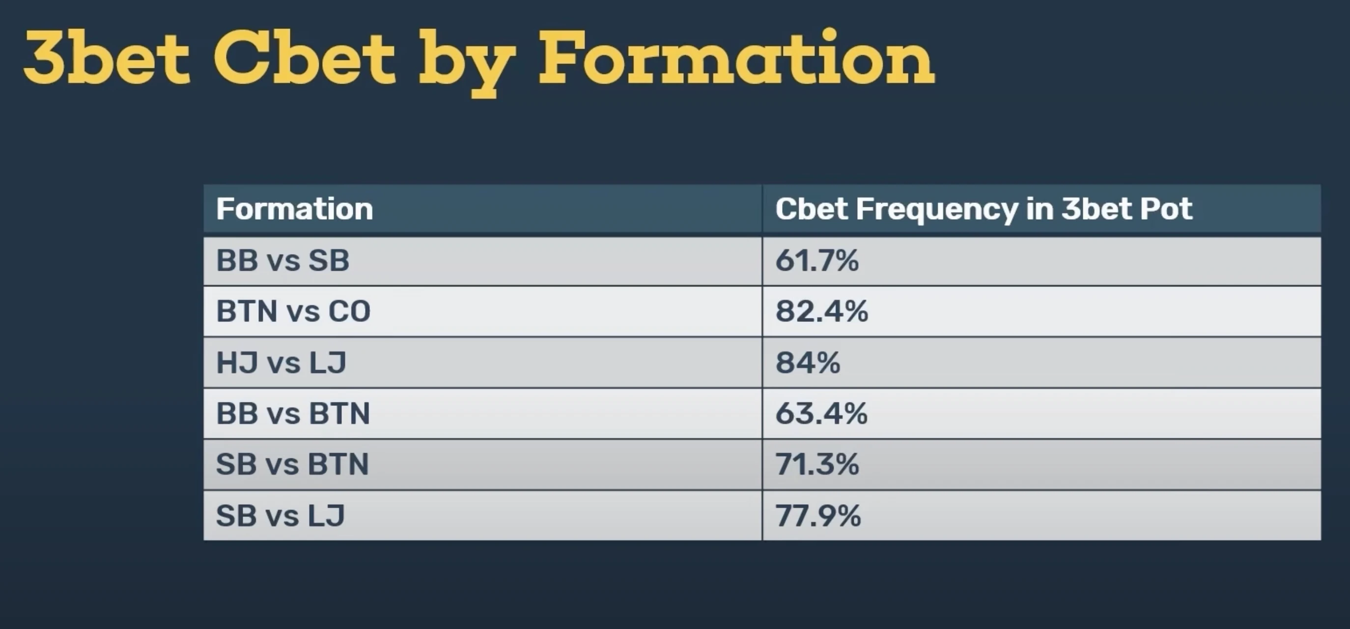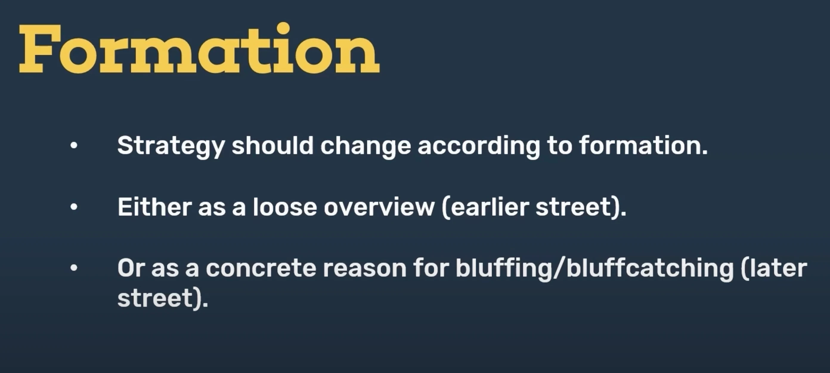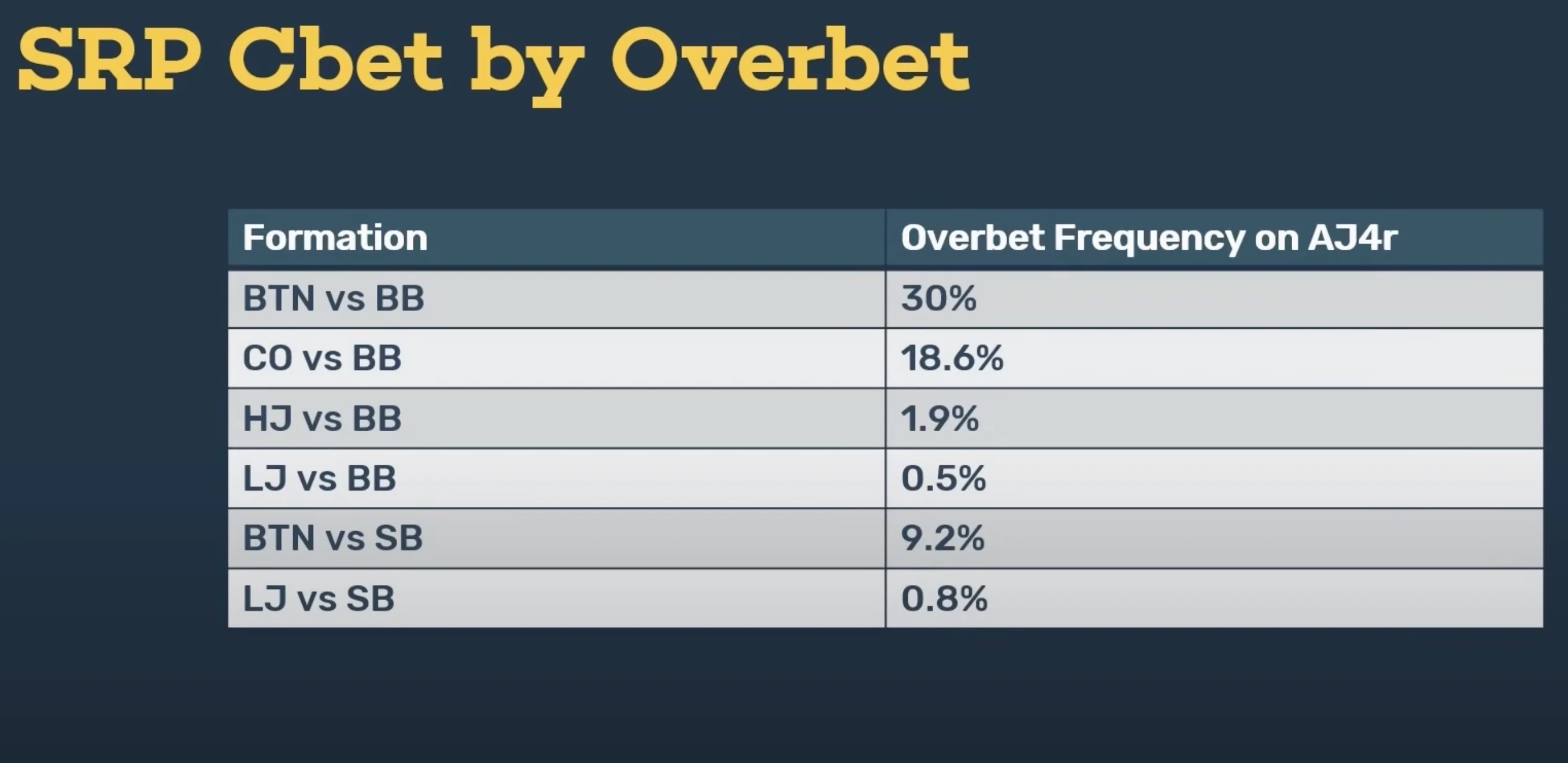27 Sep 2025 Intermediate This material is for medium-skilled players 3-bet BTN continuation bet exploit overbet position Welcome back to another episode of the Red Chip Poker Podcast. I’m James Sweeney, aka Splitsuit, co-founder of Red Chip Poker. Quick question: are you thinking about poker strategy the wrong way? In this season finale, we’ll break down a concept most players overlook, but one that heavily influences everything from c-betting to bluff catching: formational awareness. If you’ve only been categorizing spots as “in position” or “out of position,” you’re missing the nuance that separates elite players from the rest. We’ll dive into how specific formations — like button vs. big blind or cutoff vs. hijack — radically change solver outputs, overbet frequencies, and exploitative decisions. Whether your game leans more GTO or exploitative, this episode will show you how granular awareness of formations leads to sharper, more profitable strategies. What Is Formation in Poker The term formation has been around for years. It’s similar to the concept of position, but slightly more specific. Position is usually binary: you’re either in position or out of position; Formation, on the other hand, refers to the precise table matchup. For example: button vs. cutoff, or button vs. small Blind. There’s also a middle ground. Instead of being purely binary or hyper-specific, we sometimes group situations under terms like “early position formation”. That refers to any matchup where at least one player is seated earlier than the cutoff. Early, Mid, and Late Position Formations We can break down formations into broad categories: Late position formations – all players are cut off or later. For example, cutoff vs. big blind. Mid position formation – not a widely used term yet, but there’s room for it. This would specifically involve the cutoff. Early position formations – any matchup where one of the players is seated earlier than the cutoff. Why highlight the cutoff separately? Because it plays very differently from either the button or the hijack. The cutoff opens aggressively, but not nearly as aggressively as the button. At the same time, it’s still much wider than the hijack. This makes the cutoff its own unique formation that deserves attention. Why Formation Matters More Than Position So why not just stick with “position” instead of using “formation”? Because the exact formation dramatically impacts the correct strategy. Yet, most players rarely talk about it. For example, you’ll often hear players describe their c-betting ranges as simply: “In position” vs. “Out of position”; Or broken down by pot type: single-raised, three-bet, delayed c-bet, probe bet, etc. These are useful distinctions, but notice what’s missing: the formation itself. Nobody says: “This is my delayed c-bet and follow-up strategy button vs. big blind”. Or: “Here’s my c-bet range UTG vs. big blind”. Instead, players default to general labels like “IP in a single-raised pot”. That skips over one of the most important variables in the hand: who is actually facing who. Players often build strategies like: “This is my c-bet range in position in single-raised pots.” That’s not a terrible way to approach the game, but it’s overly broad. Formation has a huge impact on how situations should be played, yet many players completely ignore it when constructing strategy. Let’s look at a few solver outputs to see the difference formation makes: Big Blind vs. Small Blind: Small blind open-raises, big blind 3-bets. The correct c-bet frequency is 61.7%. This is one of the lowest frequencies in 3-bet pots. Button vs. Cutoff: Same situation, but button 3-bets against cutoff. Now the average c-bet frequency across all flops rises to 82.4%. Hijack vs. Lowjack (MP vs. UTG): In this early-position formation, the c-bet frequency in 3-bet pots climbs even higher to 84%. The earlier the formation, the higher the average c-bet frequency: BB vs. SB: 61.7% BTN vs. CO: 82.4% HJ vs. LJ: 84% This means in early-position formations, many hands become pure c-bets, while in late-position formations we should be far more selective. A simple way to think about it: In early-position 3-bet pots, if a hand feels close, lean toward c-betting; In late-position 3-bet pots like BB vs. SB, if a hand feels close, lean toward checking back. Tips from Steffen Sontheimer: How to Call 3-Bets in Position and Outplay Opponents Postflop Out of Position C-Bet Strategies in 3-Bet Pots As a general rule of thumb, out of position c-bets less often in 3-bet pots compared to in position. But there are some exceptions worth noting. For example, big blind vs. small blind has the lowest c-bet frequency of all 3-bet pots — even though the big blind is technically in position after the flop. Big Blind vs. Button Let’s compare that to big blind vs. button, where the big blind 3-bets against a button open. GTO average c-bet frequency across all flops is 63.4%. That’s slightly higher than BB vs. SB (61.7%), but the important point is this: in BB vs. BTN, you’re out of position, yet you’re still supposed to c-bet more aggressively than in BB vs. SB. Small Blind vs. Button Now consider small blind vs. button. At first glance, you might assume this is similar to BB vs. BTN — both are blind vs. button battles. But there’s a key difference: Big blind’s 3-bet range: contains a lot of speculative, polarized hands; Small blind’s 3-bet range: much stronger and more depolarized. Because of this, the small blind should c-bet more aggressively: BB vs. BTN: 63.4% SB vs. BTN: 71.3% Small Blind vs. Lowjack We can also build a scenario where out of position c-bet frequency becomes very high. Take small blind vs. lowjack — a clear early position formation (because one of the players is UTG+). GTO average c-bet frequency is 77.9%. That’s not quite as aggressive as HJ vs. LJ in position (84%), but it