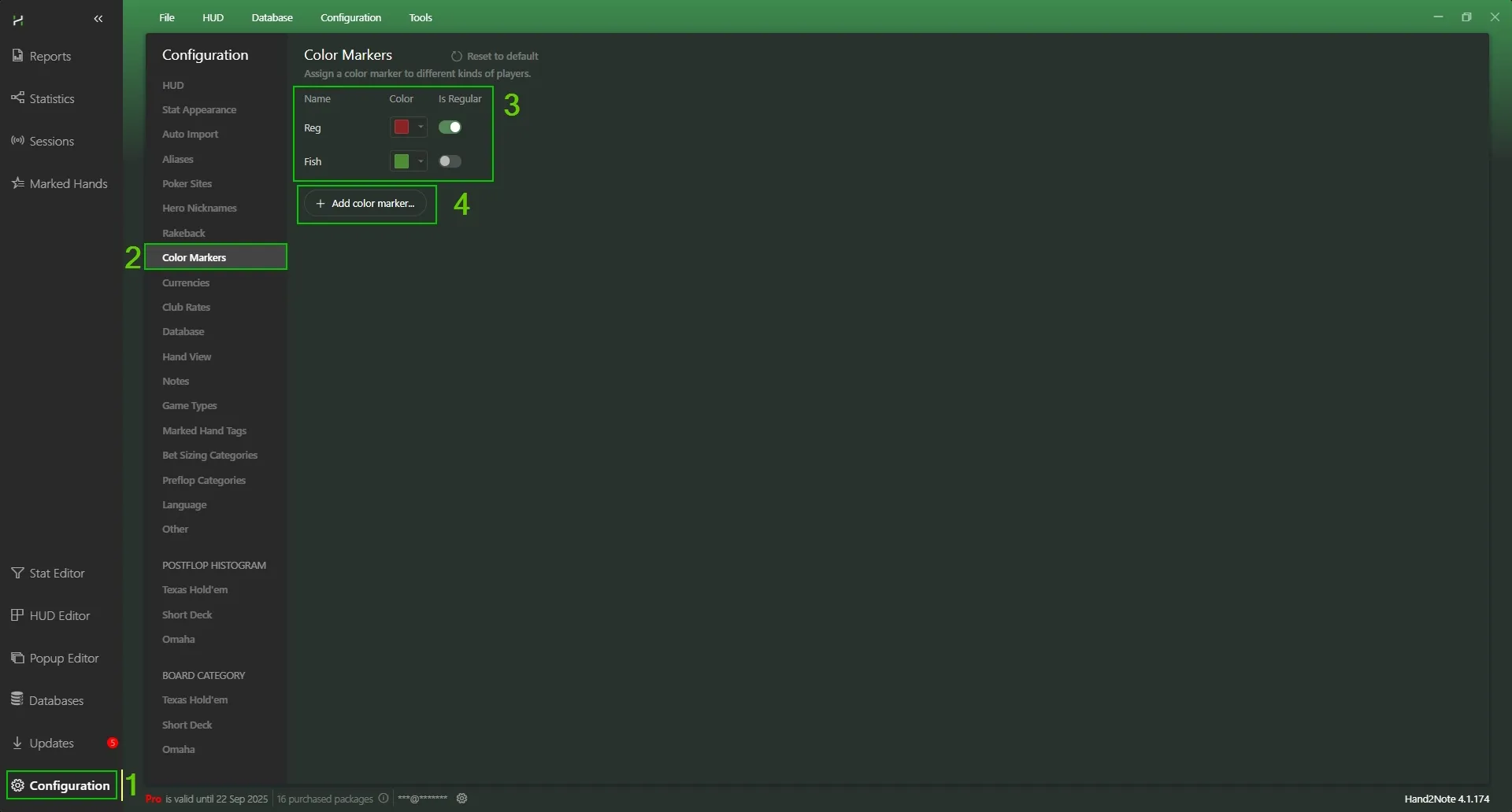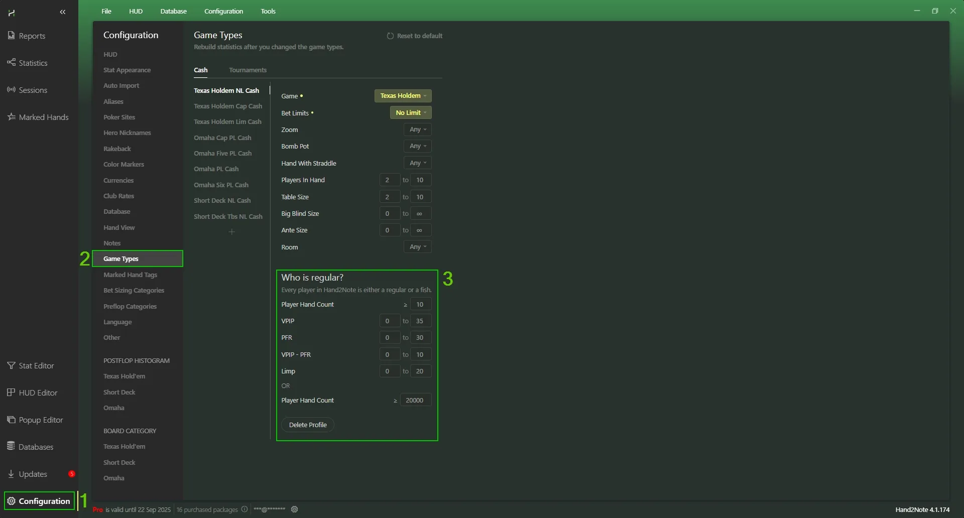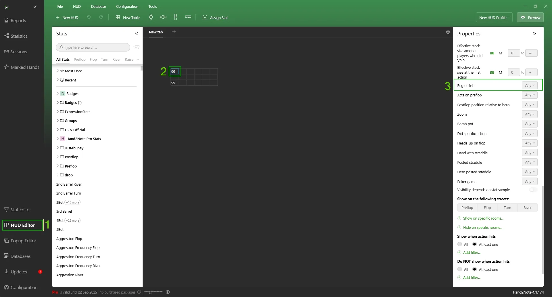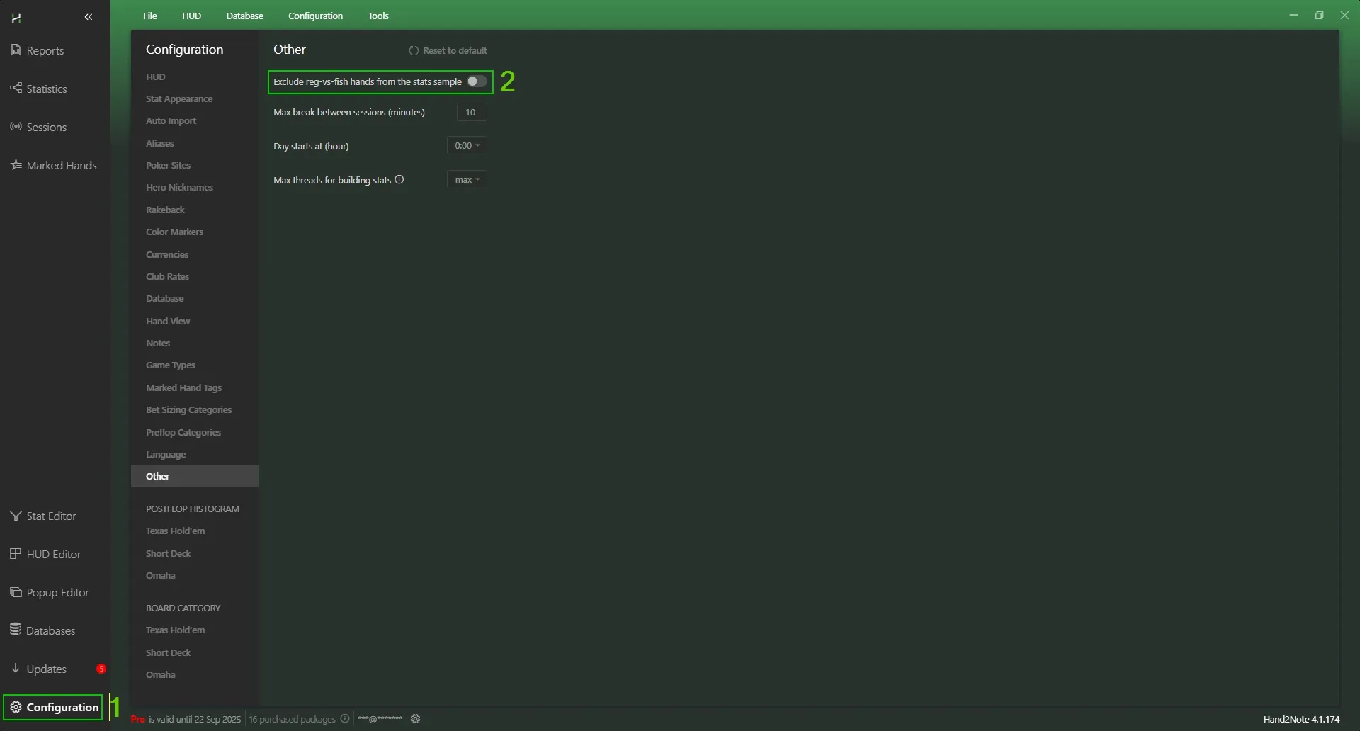 05 Oct 2025 Intermediate This material is for medium-skilled players HUD stats The Reg-Fish system in Hand2Note is a built-in mechanism for recognizing the types of players: regulars (professionals) and fish (amateurs). Hand2Note divides all opponents into these two categories. Regulars are players with a large number of hands played, usually playing at a professional level, while "fish" are amateurs with irregular, non-standard play and a small number of hands played. This separation is important because the behavior of regulars and fish is significantly different: mixing Reg-Fish hands in general statistics can seriously distort the data. Using the Reg-Fish system, Hand2Note players have the opportunity to customize the HUD and reports separately for each group, exclude irrelevant hands from calculating statistics, and generally adapt the strategy more precisely. Configuring the Reg-Fish system in Hand2Note To start using Reg-Fish, you need to set up the recognition criteria and color tags: The parameter "Who is the Reg?". Open Configuration → Game Types and select the appropriate game type (for example, 6-max cache). In the "Who is regular" tab, set the conditions under which Hand2Note will consider the player to be a regular. By default, Hand2Note offers simple criteria: number of hands ≥10, VPIP ≤35%, PFR ≤30%, VPIP-PFR difference ≤10%, limps ≤20, or just hand volume ≥20,000. A player who does not meet these conditions is considered a fish. Adjust these values to suit your playing style. Color labels for players. By default, Hand2Note offers 2 categories: "Regular" and "Fish". To configure it, go to Configuration → Color Markers. In this window, you can add any number of labels at your discretion by clicking the "Add color marker (4)" button. In the lobby or HUD itself, click on the color marker cell of the player's nickname to change the label. Be careful: after manually setting the tag for the player, automatic detection of Reg/Fish for him is disabled. In other words, a manually inserted label takes precedence over any filters. HUD and statistics for Reg/Fish. Hand2Note allows you to display different HUDs and statuses for regs and fish. In the HUD Editor, configure the panel so that its blocks are displayed only for regs or only for fish. To do this, set the condition Reg or Fish = Reg (or = Fish) in the properties of panels or cells. For example, you can create one HUD panel that is activated against regs, and another against fish. This allows you to show different stats for different types of players.: For HUD "Against fish": property Reg or Fish = Fish. For HUD "Against regs": Reg or Fish = Reg. Separate stats in Stats Editor. The "Reg or Fish" function (3) Is a parameter (filter) of the player type: when creating statistics, you specify whether the desired player is considered reg or fish. In fact, you are telling Hand2Note "count these statistics only for those cases where the opponent is marked as Reg or as Fish." The "Reg-vs-Fish action" function (4) This is a more subtle option in the Stat Editor (added as a separate setting in recent versions). It allows you to explicitly include/exclude actions that are "reg vs fish" - that is, to filter situations by a pair of player types (for example, to include only actions where reg plays against another reg, and exclude hands where reg played against fish). It is necessary so as not to mix different types of hands and not to distort statistics. The Reg-Fish exclusion option. Hand2Note has a setting that automatically excludes Reg-vs-Fish hands from the regulars' statistics (so that their data is cleaner). In Configuration → Other, activate the Exclude reg-vs-fish hands from the stats sample option. Then Hand2Note will ignore all hands in which at least one player with a fish tag remains at the table. This provides more accurate data on opponents when there are no Chips left at the table. Conclusion The Reg-Fish system in Hand2Note is a simple but powerful tool that helps to separate the behavior of experienced players from the behavior of amateurs. This separation provides cleaner, more relevant data: you get accurate stats and HUD hints for each group separately and reduce the risk of erroneous conclusions when different types of players are mixed in the same sample. The key point is that not everything in statistics is equal. Reg plays differently than fish, and if you want to make the right decisions at the table, adjust filters and panels for specific types of opponents. Use "Who is regular", color labels, Reg or Fish and Reg-vs-Fish action options where necessary, but always keep in mind the sample size: the tighter the filters, the fewer hands, the higher the noise. ☝️ A properly configured Reg-Fish system makes your analytics significantly more useful - HUD becomes smarter, stats are more accurate, and game decisions are more reasonable. You can buy Hand2Note subscription with 10% discount using our promo code: GETCOACH Buy Subscription With 10% Discount