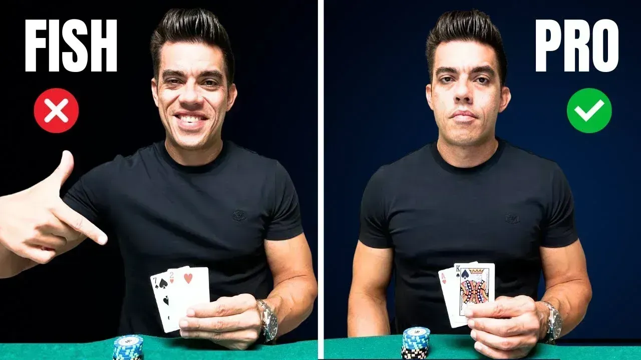 27 May 2024 Intermediate This material is for medium-skilled players A-game mental game moving up stakes Hey everyone, Nathan here. Today, I'm going to share the top-7 signs that you're facing a poker pro. If you notice anyone doing these seven things at your poker table, it's likely you're up against a professional. Let's dive in! Sign #7: Getting Three Streets of Value vs the Fish (every single time) One of the absolute keys throughout my career as a professional poker player has been extracting maximum value from recreational players, also known as "fish." Let me give you an example to illustrate this. Imagine you raise with Ace of Hearts and Jack of Clubs, and a recreational player calls. These are the types of players who will play 50% of all hands dealt to them. They play for fun, often just on weekends, maybe having a beer or watching a game simultaneously, etc. They don't take the game as seriously as you do, watching videos like this to improve. They just play games for fun. The flop comes down Jack of Diamonds, Eight of Spades, and Five of Spades. You bet, and they call — pretty standard so far. With the top pair and top kicker on a board with multiple draws (like 9-10 for an open-ended straight draw, or 6-7 for another open-ended straight draw), this is a crucial spot. Poker pros never leave money on the table, and consistently getting three streets of value from these situations is what sets them apart. There are multiple draws on this flop. For example, 9-10 has an open-ended straight draw, and 6-7 also has an open-ended straight draw. There are also numerous potential pair hands that this kind of player can have. Remember, this player is playing 50% of all hands dealt to them, so they can easily have hands like Jack-10, Jack-9, Jack-7, Jack-6, or even Jack-4. Recreational players play all these hands. They could also have a hand like Ace-8, King-8, Queen-8, Ace-5, 8-7, 5-6, or 5-3. The list goes on and on. Fish will play all these hands, so you just want to make a value bet here. The turn comes down with the Three of Hearts, a totally harmless card — what we call a brick. You definitely want to be betting here again. This card does not complete any of the draws. I should mention there's also a flush draw on the flop (though it’s a heart, not spades), and the turn card doesn’t complete that flush draw either. So, this is another standard spot. You bet on the turn, and they call. Let's go to the river. The river brings the King of Hearts. This is where many people get confused and hesitant, thinking, "Oh, this lucky fish must have hit his King on the river." But as we’ll discuss further, the key mistake here is putting someone on a specific hand rather than a range of hands. Yes, a small percentage of the time, our fishy friend is going to spike the King on the river. But guys, remember all those hands we discussed earlier — all the broken draws, the worse pairs like Jack-10, Jack-9, Ace-8, and 5-6. These hands are still going to call us on the river. That's why it's a monumental mistake not to make another bet here. Versus a player like this, who is likely to call, you should never leave money on the table. Always aim to get three streets of value: bet the flop, turn, and river against the fish, and you'll have much more success. Sign #6: Hand Reading (Range Analysis) Alright, let's move on to hand reading and the importance of range analysis. As serious poker players, we need to focus on ranges, not specific hands. Putting someone on a specific hand is the stuff of Hollywood movies. Here's an example to illustrate: You have Ace of Hearts and King of Spades in early position, and a tight player calls you on the button. What kind of range can we put this player on at this point? Version number one: this is a tight player, so they’re not going to be playing 50% of all hands like our fishy friend from the previous example. I would put this player on a range that includes pocket pairs from Jacks down to Twos. This means pocket Jacks, pocket Tens, pocket Nines, all the way down to pocket Twos. They might also be playing strong broadway hands like Ace-Queen, Ace-Jack, Ace-Ten, King-Queen, King-Jack, Queen-Jack, and a couple of suited connectors like Ten-Nine of Hearts or Nine-Eight of Spades. Now, you might notice that a couple of very important hands are missing from this list, such as pocket Aces, pocket Kings, pocket Queens, and Ace-King. Why did I not include these hands in this range? This is how modern hand reading works, guys. The reason those four hands are excluded is that we would expect a player like this to re-raise us pre-flop with these strong hands. Remember, we're using all the information we gather during a poker hand. Since this tight player just called, we can immediately narrow their range down to the hands listed earlier and discount hands like Aces, Kings, Queens, and Ace-King because we assume they would have re-raised us pre-flop most of the time. This is how poker pros analyze situations and put someone on a range of hands, not just a specific hand. As we progress through the hand, that range will narrow depending on the player type and the actions they take. Sign #5: Never Getting Too High or Too Low Alright, let's move on to sign number five that you're up against a poker pro: they never get too high or too low. Let me give you a simple sports analogy. I'm from Canada, so you might already assume that I'm a big hockey fan, and you'd be correct. Go Canucks, go! One cup before I die! In the Stanley Cup playoffs, which are a two-month ordeal where you win and lose a lot of hockey games (hopefully more wins than losses), there's a common saying you hear from the best professional NHL players: "Never get too high when you win and never get too low when you lose". This, in a nutshell, is what poker is all about. Let me give you an example: Day one: You win $500. Who cares? Day two: You lose $300. Who cares? Day three: You lose $400. Who cares? Da