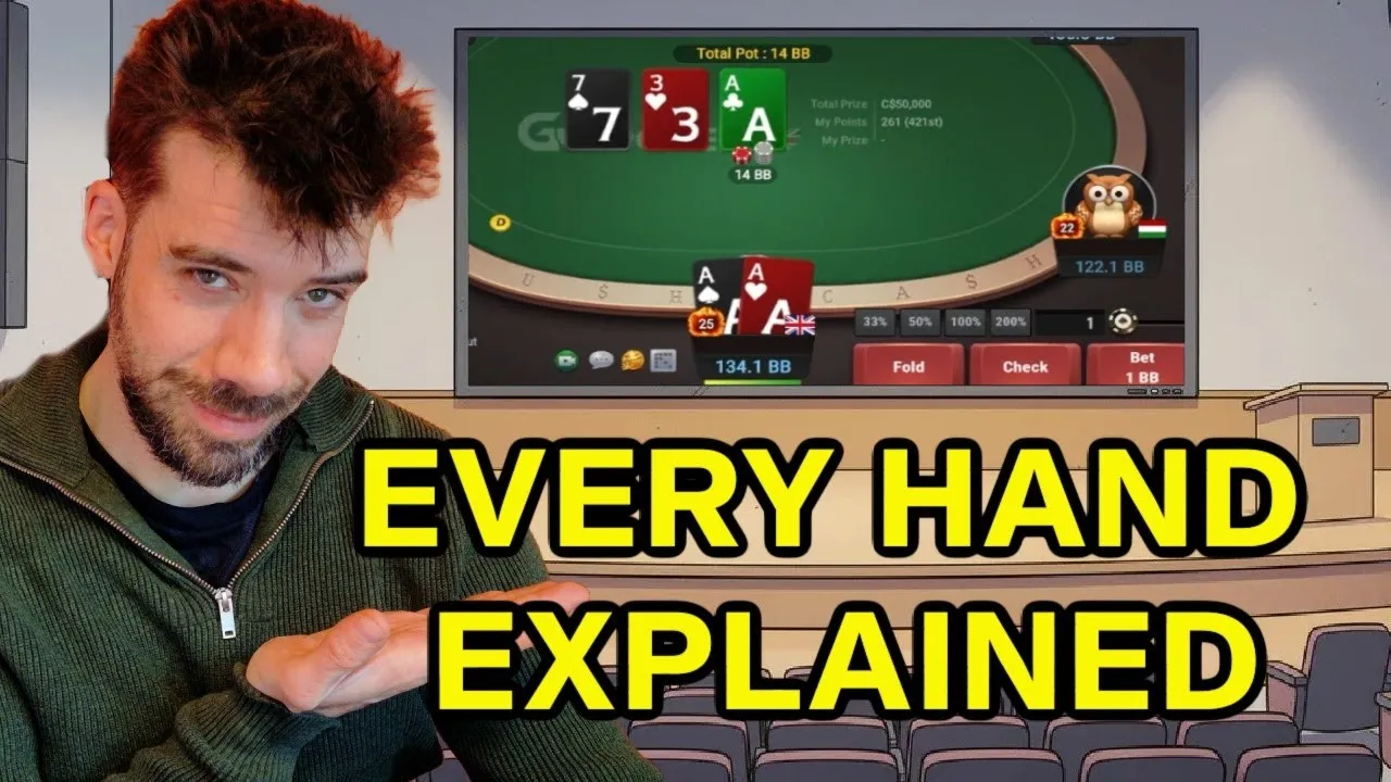 09 Nov 2024 Intermediate This material is for medium-skilled players 3-bet GTO position ranges Comprehensive guide on tournament poker strategy focusing on three main areas: stack depth adjustments pre-flop, handling marginal hands post-flop, and mindset through different tournament stages. The video covers GTO-based pre-flop charts for various stack sizes and positions, teaching when to be aggressive and when to play cautiously. Tournament success requires mastering stack depth adjustments, careful play with marginal hands, and understanding different tournament stages. Focus on position and proper hand selection based on stack size. Tournament strategy: Adjust pre-flop ranges based on stack depth (60BB, 30BB, 15BB) Play tighter from early positions, wider from late positions Handle marginal hands carefully post-flop to avoid big losses Pay special attention to bubble play and ICM situations Focus on implied odds in early stages, blockers in later stages Adapt strategy based on stack sizes and tournament stage